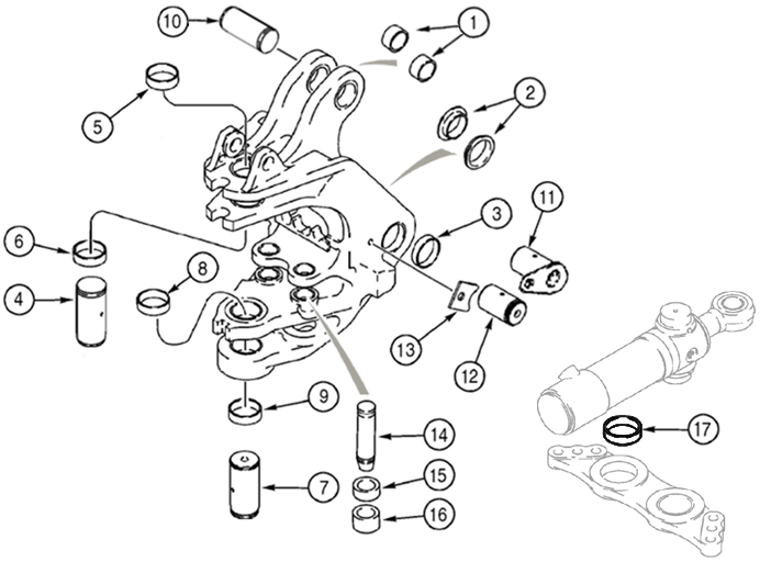 Case 580L, 580SL, 580M, 580SM Bushing - Swing Cylinder Pivot - 17 | HW Part Store